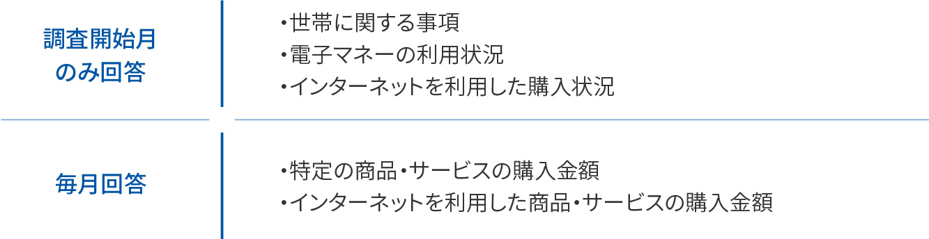 「家計消費状況調査」は、国民の消費の動向を的確に把握するために、世帯における購入頻度の少ない高額商品・サービスへの支出を調査し、更に、今後の消費の動向を左右するICT(情報通信技術)関連の商品・サービスへの支出やインターネットを利用した購入状況などを調査しています。